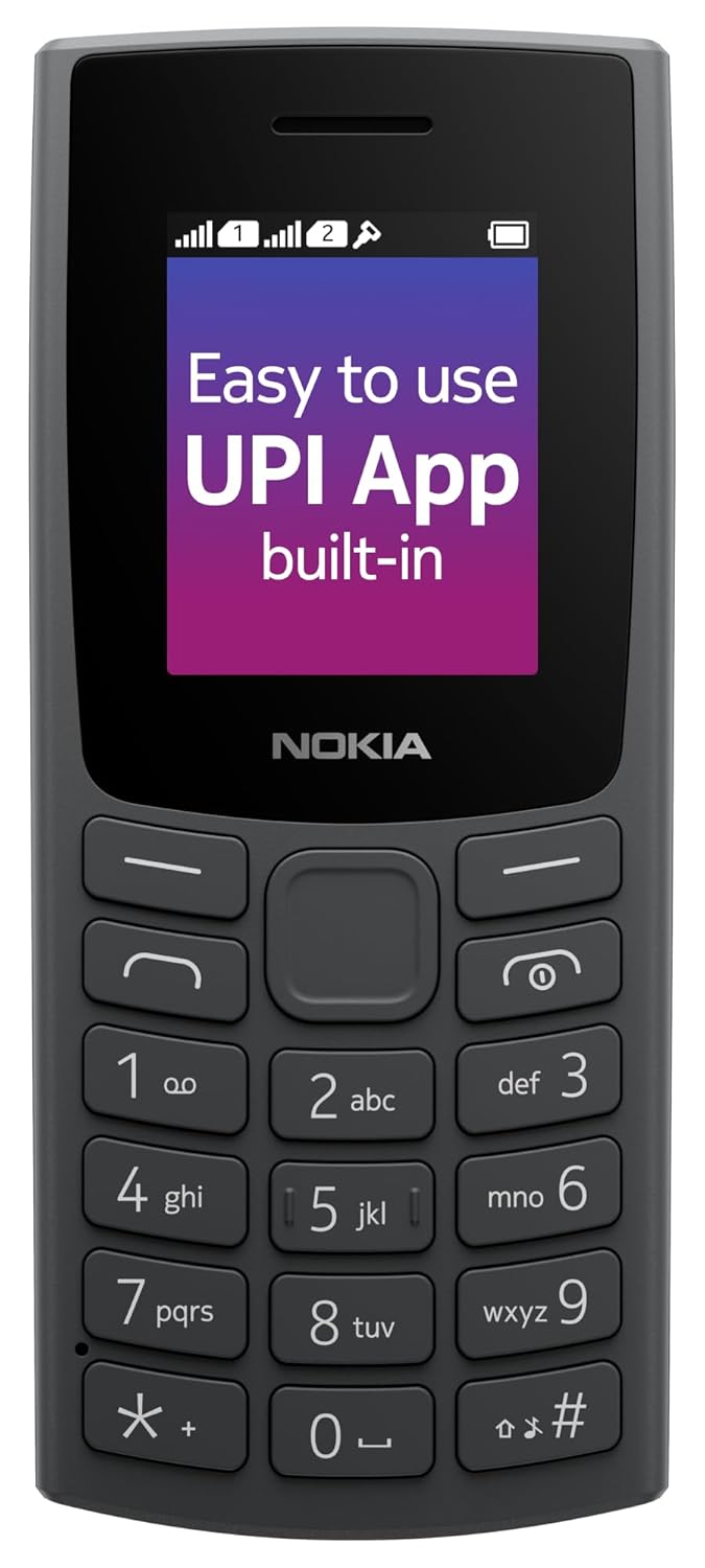 Nokia 106 Single Sim, Keypad Phone with Built-in UPI Payments App, Long-Lasting Battery, Wireless FM Radio & MP3 Player, and MicroSD Card Slot | Charcoal